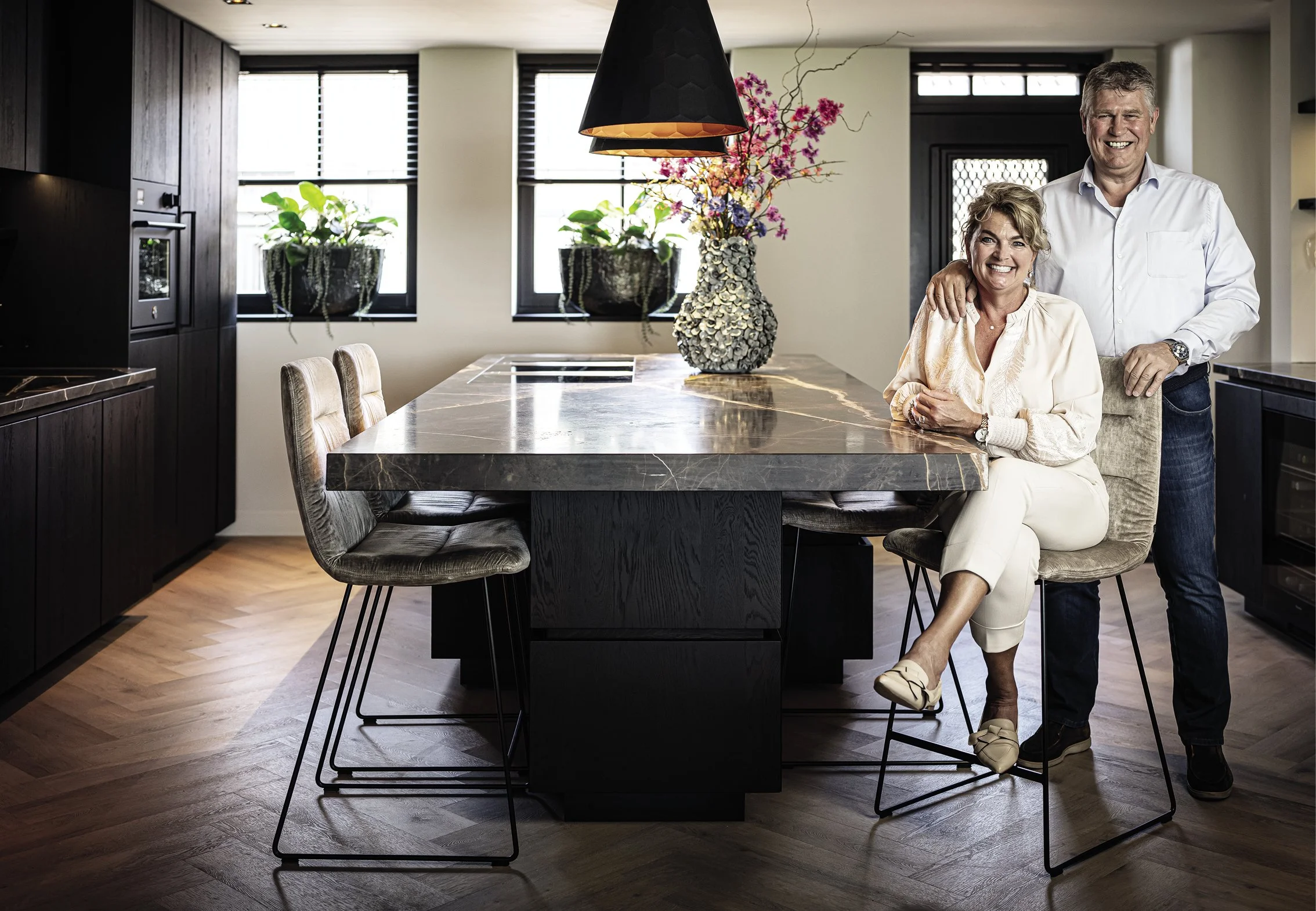Wij werken uitsluitend met de mooiste materialen: massief hout, natuursteen, metaal, leer en fineer van uitzonderlijke kwaliteit. Materialen die niet alleen visueel indruk maken, maar ook een warme en luxe uitstraling geven.